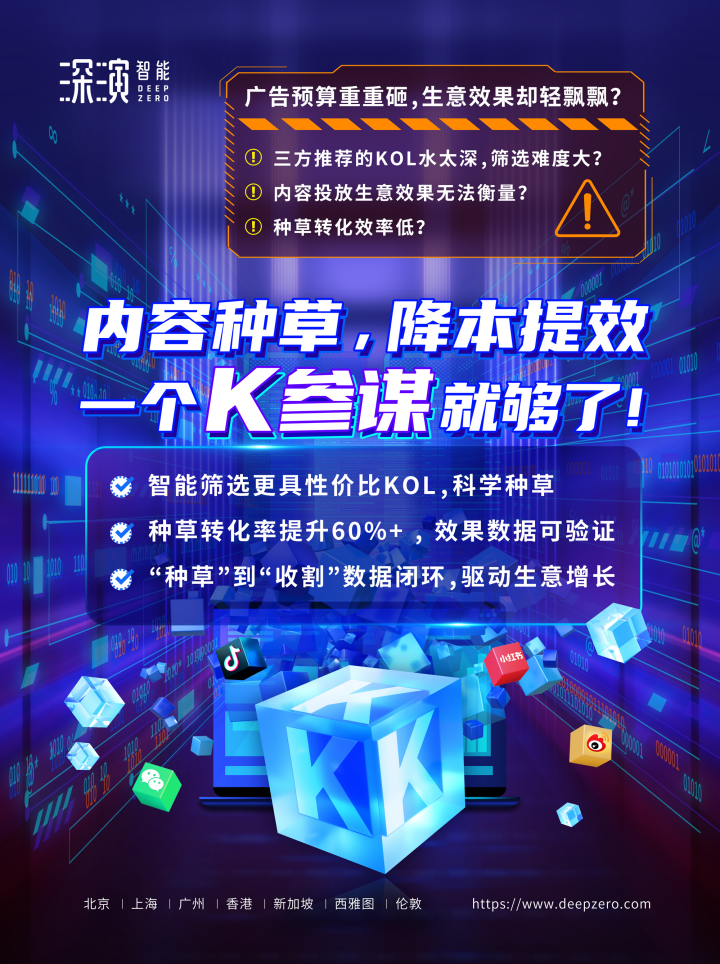 凤凰联盟智能K参谋科学前选,可跨领域找到最能影响品牌目标TA人群的KOL进行投放,同时有效平衡投资回报率;内容营销数据可同电商后链路平台打通,进行数据归因分析,准确判断KOL影响的用户是否真实在电商平台产生购买行为;实现“种草”到“收割”链路闭环,轻松内容营销,可根据品牌方的业务需求提供一站式的KOL采买及数据验证服务,有利提升整体内容营销的效率与效果。